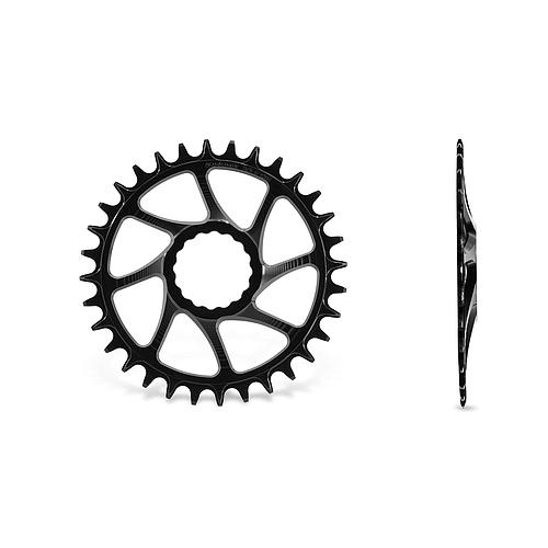 Special tooth shape guarantees a tighter contact with chain and softer pedaling (in comparison with regular chainrings)